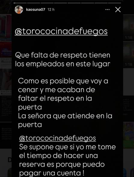 Mediante sus historias, la también empresaria mencionó que, había hecho una reserva en el local Toro ubicado en Las Mercedes, pero, no pudo ingresar porque supuestamente no cumplía con el código de vestimenta.
