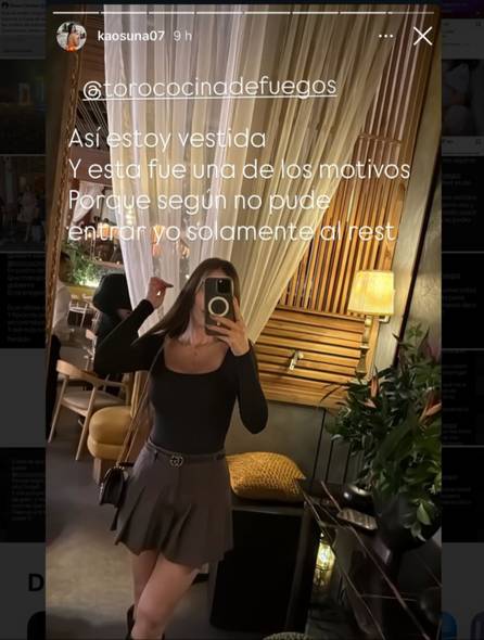Mediante sus historias mencionó que, había hecho una reserva en el local ubicado en Las Mercedes, pero, no pudo ingresar porque supuestamente no cumplía con el código de vestimenta