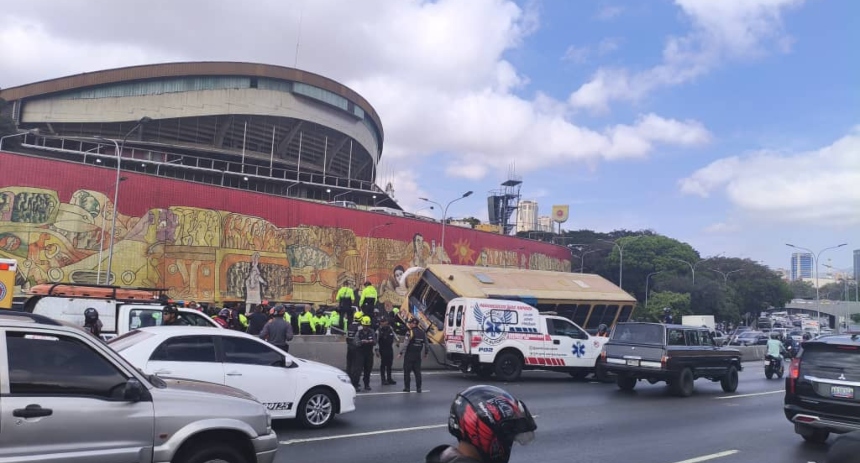 Este lunes se registró un fuerte accidente de tránsito en la autopista Francisco Fajardo en sentido oeste-este que involucró a un vehículo de transporte público a la altura de Plaza Venezuela.