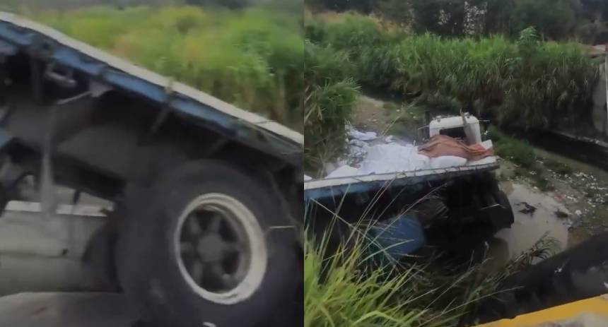 Este jueves en horas de la mañana se registró un fuerte accidente vial en la trocha de Nueva Casarapa en Guarenas, estado Miranda, cuando un camión saltó la isla y se fue hacia un río.