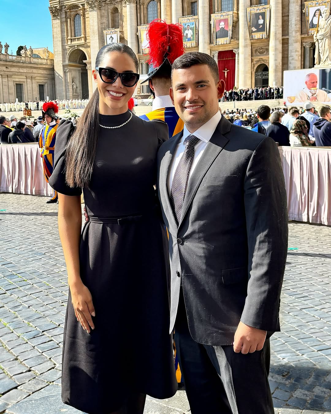 Thalía Olvino: La Miss Venezuela 2019 asistió en compañía de su esposo. “¡Hoy mi corazón rebosa de gratitud acompañando la canonización de Madre Carmen Rendiles y el Dr José Gregorio Hernández!”, escribió en Instagram.