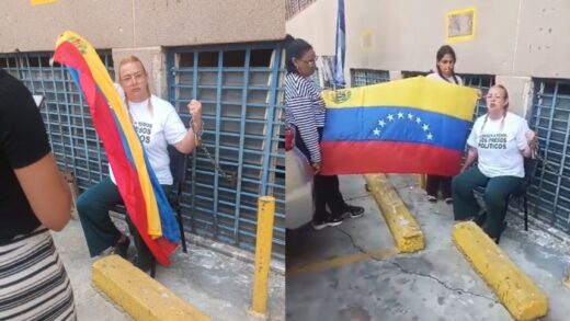 La señora Evelis Cano, madre del preso político Jack Tantak Cano, se encadenó este lunes a la Zona 7 de la Policía Nacional Bolivariana (PNB) en Boleíta,...