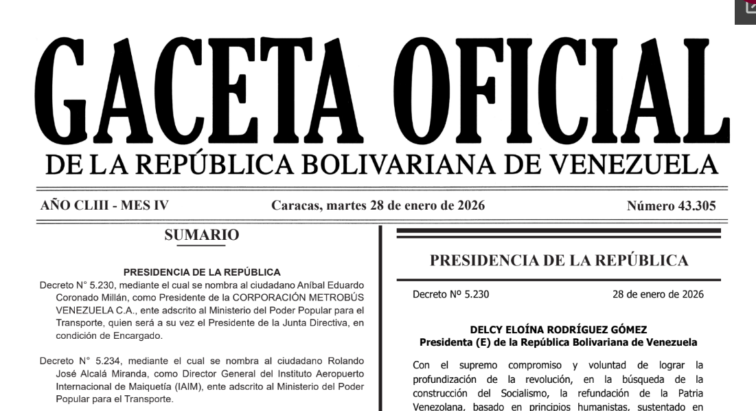 Desde que asumió la presidencia encargada, Delcy Rodríguez ha realizado varios cambios en su gabinete ministerial. Entre ellos la nueva ministra de Turismo, el ministro de Comunicación e Información. Así como la ministra de Salud, el como presidente del Centro Internacional de Inversión Productiva (CIIP), entre otros.