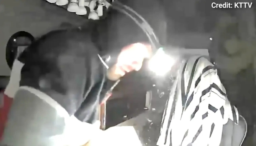 Las cámaras de seguridad captaron el momento en que un hombre ingresó a Nafiseh Jeweler, en Ventura Boulevard, descendiendo desde el techo y llevándose más de 100.000 dólares en joyas y monedas especiales, todo en menos de 10 minutos.