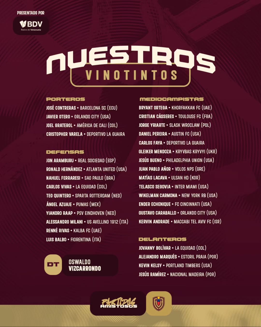 La Federación Venezolana de Fútbol (FVF) anunció a Oswaldo Vizcarrondo como director técnico interino de la Vinotinto para los amistosos que se realizarán en octubre. Ante esto, el exjugador reveló su primera convocatoria con la selección.