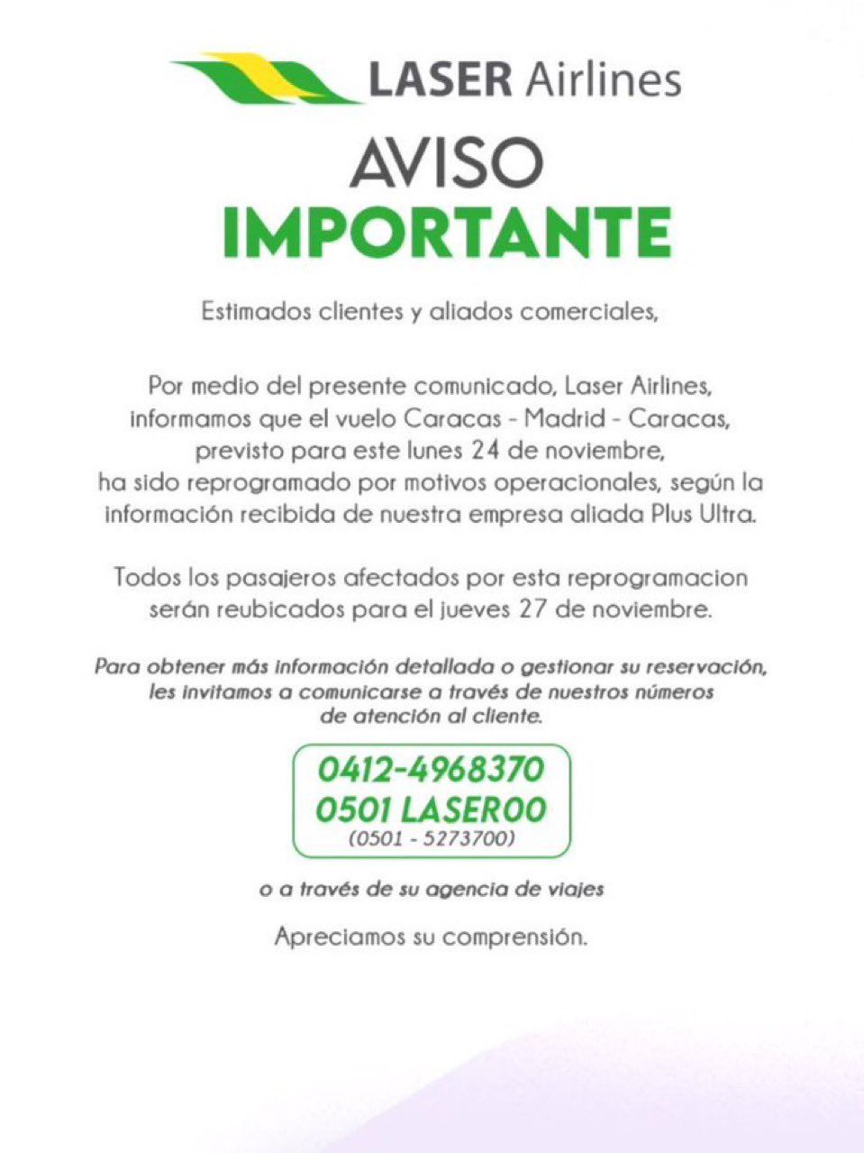 Esta decisión ocurre luego de que la Aviación Militar de Estados Unidos emitiera una alerta para el espacio aéreo de Maiquetía, el sur del Caribe y también el área de Curazao.