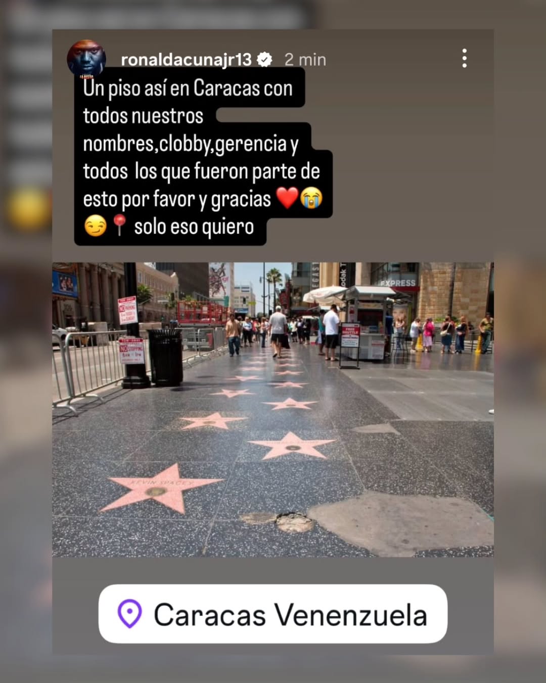 A través de sus redes sociales, el jardinero venezolano pidió que hagan en Caracas un piso como el del Paseo de la fama de Hollywood para celebrar a cada uno de los jugadores que hicieron historia en este evento deportivo.