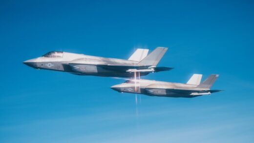 Aviones F-35B Lightning II del Cuerpo de Marines de los Estados Unidos realizan operaciones de vuelo rutinarias en el área de responsabilidad del Comando Sur de...