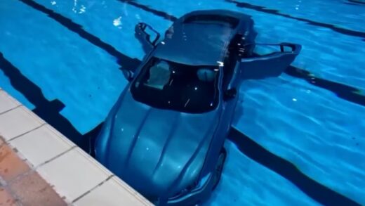 Carro de lujo cayó en una piscina luego que la conductora habría confundido los pedales en Francia