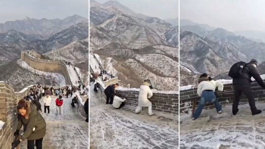 Nevada convirtió tramo de la Gran Muralla China en una pista de hielo y así reaccionaron los turistas