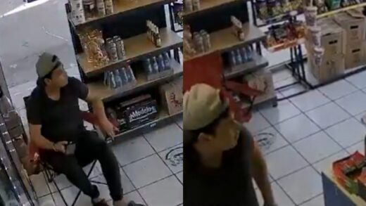 Un empleado de una tienda de cerveza estuvo a punto de morir por un neumático que se desprendió de un vehículo e ingresó a toda velocidad...