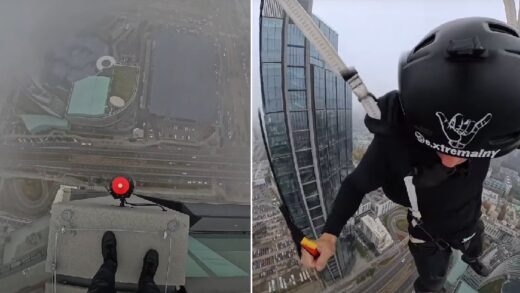 Así fue el impresionante salto de un paracaidista desde el edificio más alto de toda la Unión Europea